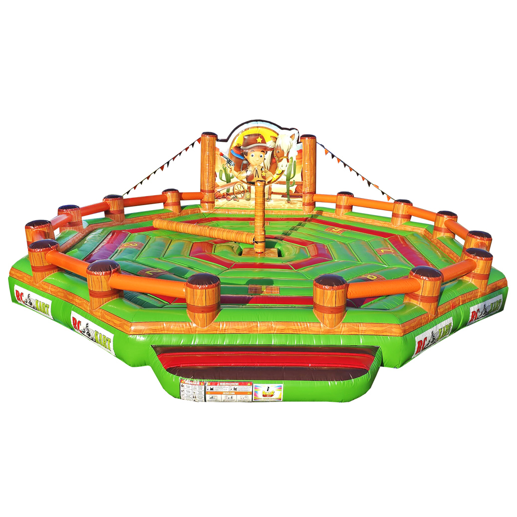 Dmuchana poduszka ELIMINATOR WESTERN – dmuchaniec wykonany z najlepszych materiałów, świetna atrakcja na każdy event, festyn bądź inną plenerową imprezę dla dzieci/młodzieży. Rozrywka gwarantowana (nie tylko dla najmłodszych)! Na urządzenie dajemy gwarancje i atesty, dzięki którym nie muszą się Państwo obawiać o bezpieczeństwo osób korzystających z prezentowanego produktu.
