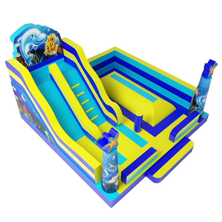 Dmuchany plac zabaw “Morski” z poduszką do skakania – sala zabaw – dmuchańce – dmuchaniec wykonany z najlepszych materiałów, świetna atrakcja na każdy event, festyn bądź inną plenerową imprezę dla dzieci/młodzieży. Rozrywka gwarantowana ! Na urządzenie dajemy gwarancje i atesty, dzięki którym nie muszą się Państwo obawiać o bezpieczeństwo osób korzystających z prezentowanego produktu.