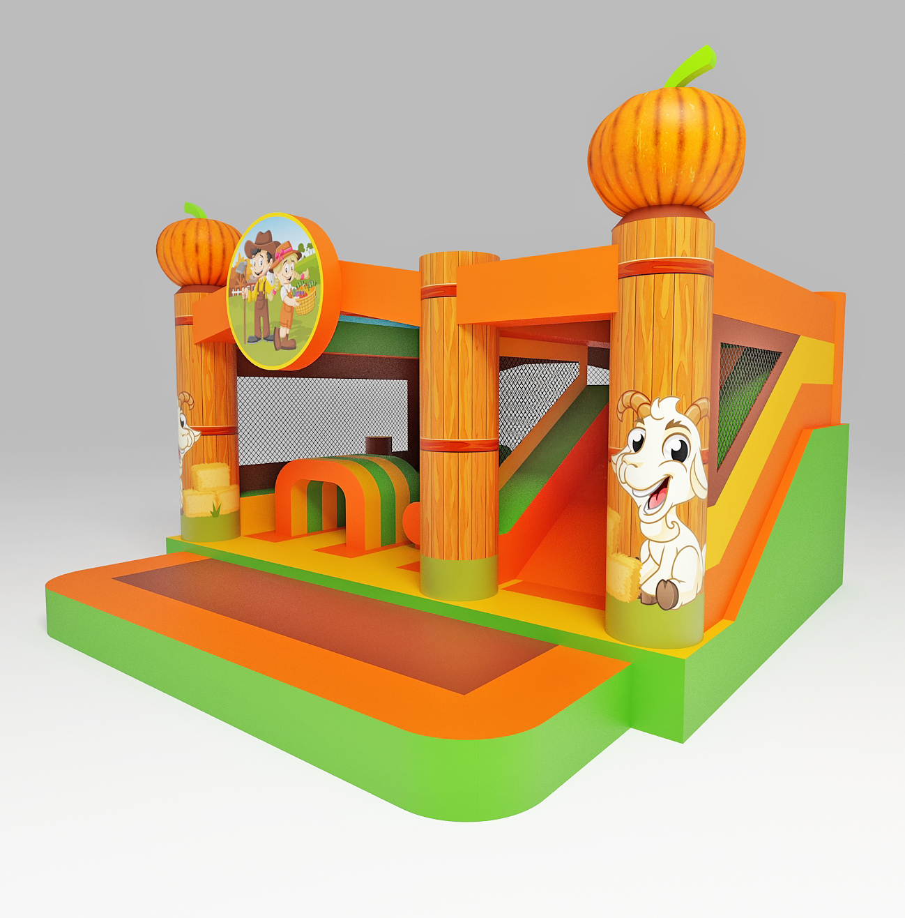 Plac zabaw dmuchany ze zjeżdżalnią “FARMA” – dmuchańce – dmuchaniec wykonany z najlepszych materiałów, świetna atrakcja na każdy event, festyn bądź inną plenerową imprezę dla dzieci. Rozrywka gwarantowana ! Na urządzenie dajemy gwarancje i atesty, dzięki którym nie muszą się Państwo obawiać o bezpieczeństwo osób korzystających z prezentowanego produktu.