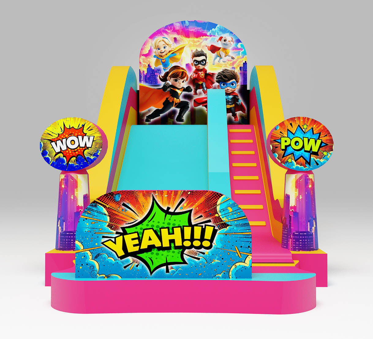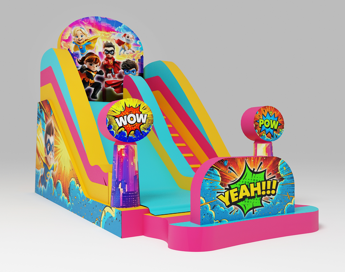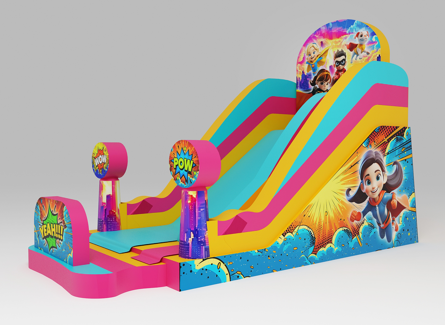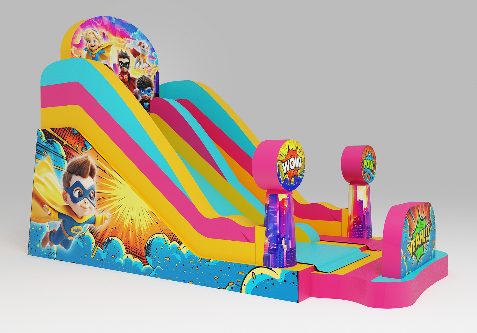 Zjeżdżalnia dmuchana “SUPERHERO” – dmuchańce – dmuchaniec wykonany z najlepszych materiałów, świetna atrakcja na każdy event, festyn bądź inną plenerową imprezę dla dzieci. Rozrywka gwarantowana ! Na urządzenie dajemy gwarancję i atesty, dzięki którym nie muszą się Państwo obawiać o bezpieczeństwo osób korzystających z prezentowanego produktu.